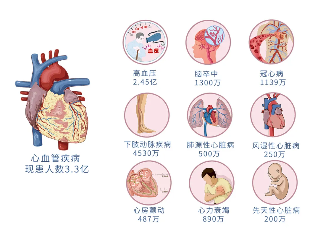 据统计,我国现有心血管疾病患者已攀升至 3.3 亿[1],每 5 例死亡中就有 2 例与心脑血管疾病相关,堪称威胁中国人健康的 “头号杀手”!